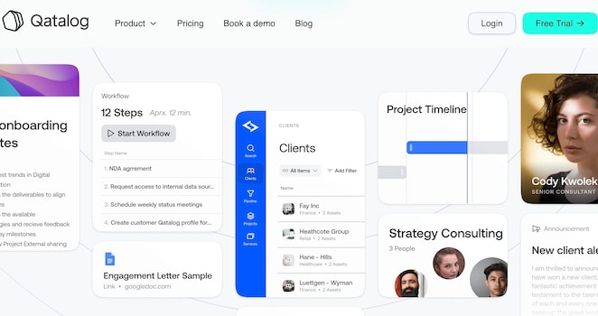 "Qatalog es una plataforma de trabajo que centraliza herramientas, procesos y comunicaciones en un solo lugar, utilizando inteligencia artificial para automatizar flujos de trabajo y mejorar la colaboración y productividad de los equipos."